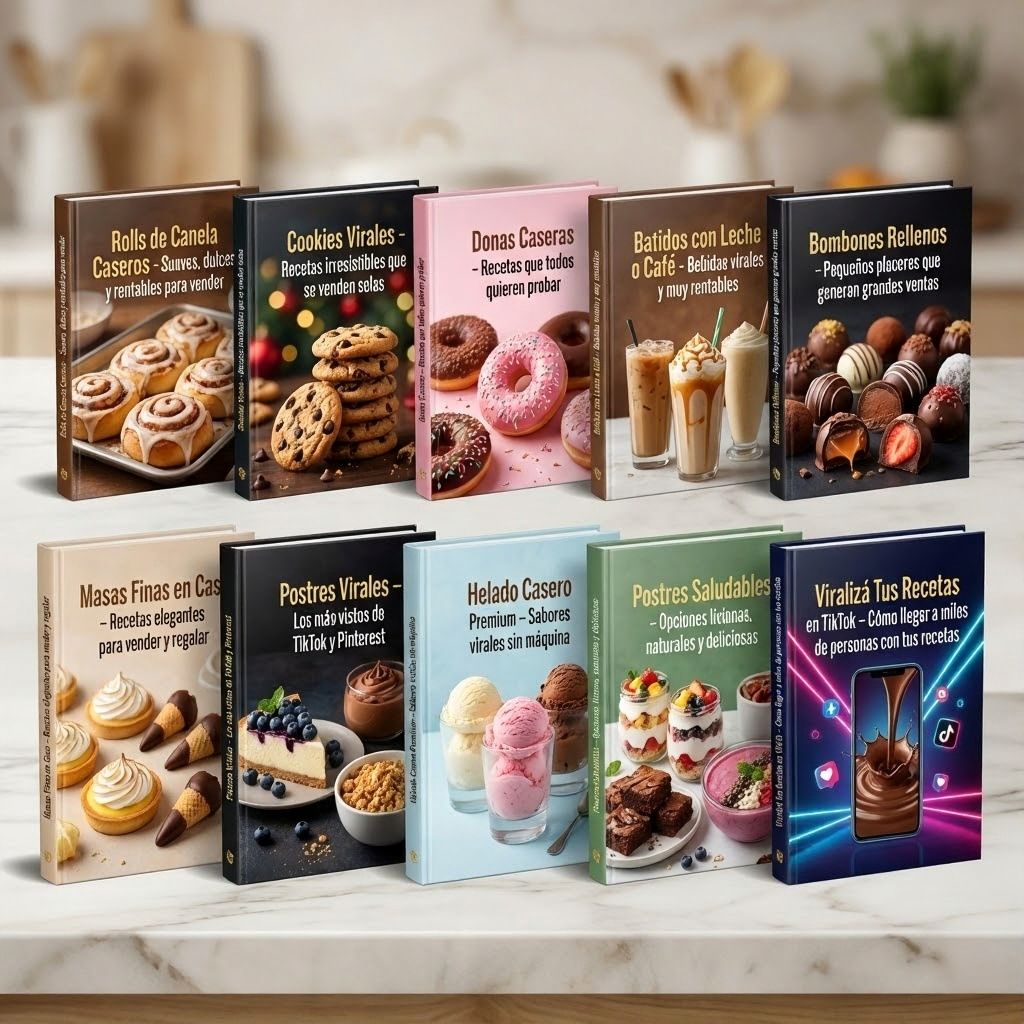No es “otro recetario más”. Es un plan pensado para Argentina: recetas virales, precios rentables y guías claras para que puedas emprender con pastelería dulce, vender más estas fiestas y generar ingresos reales desde tu cocina.